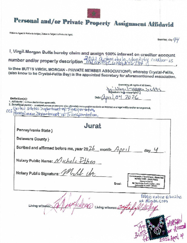 Lawful conveyance Transfer of personal and/or private property originally completed on 2025 September. This publication serves as public notice to Subjects, and/or Agents, public and private. Further view can be locate at Minds.com